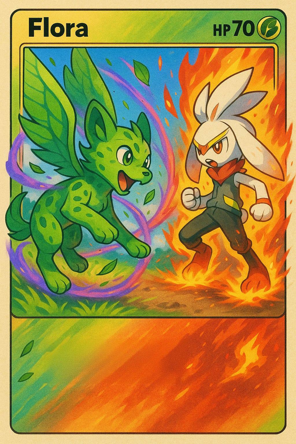 Flora is a Grass/Psychic type that’s cheetah-adjacent. Also wings.